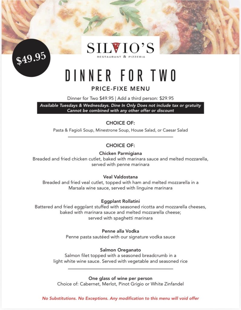 “Silvio’s offers delicious food, best Penne Vodka in Westchester – hands down! All their entrees are great, but the best part is, they welcome you as part of the family. Good for a couples’ night out, with the kids, or to cater all your events. I am often torn between Penne Silvio’s and the classic potato and egg wedge! Our family and friends have fallen in love too.”